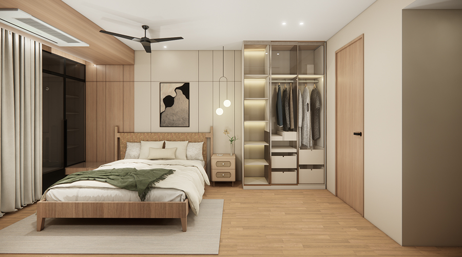 - Laminated wooden flooring in master bedroom.