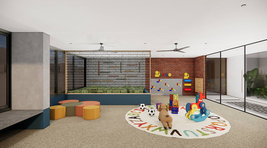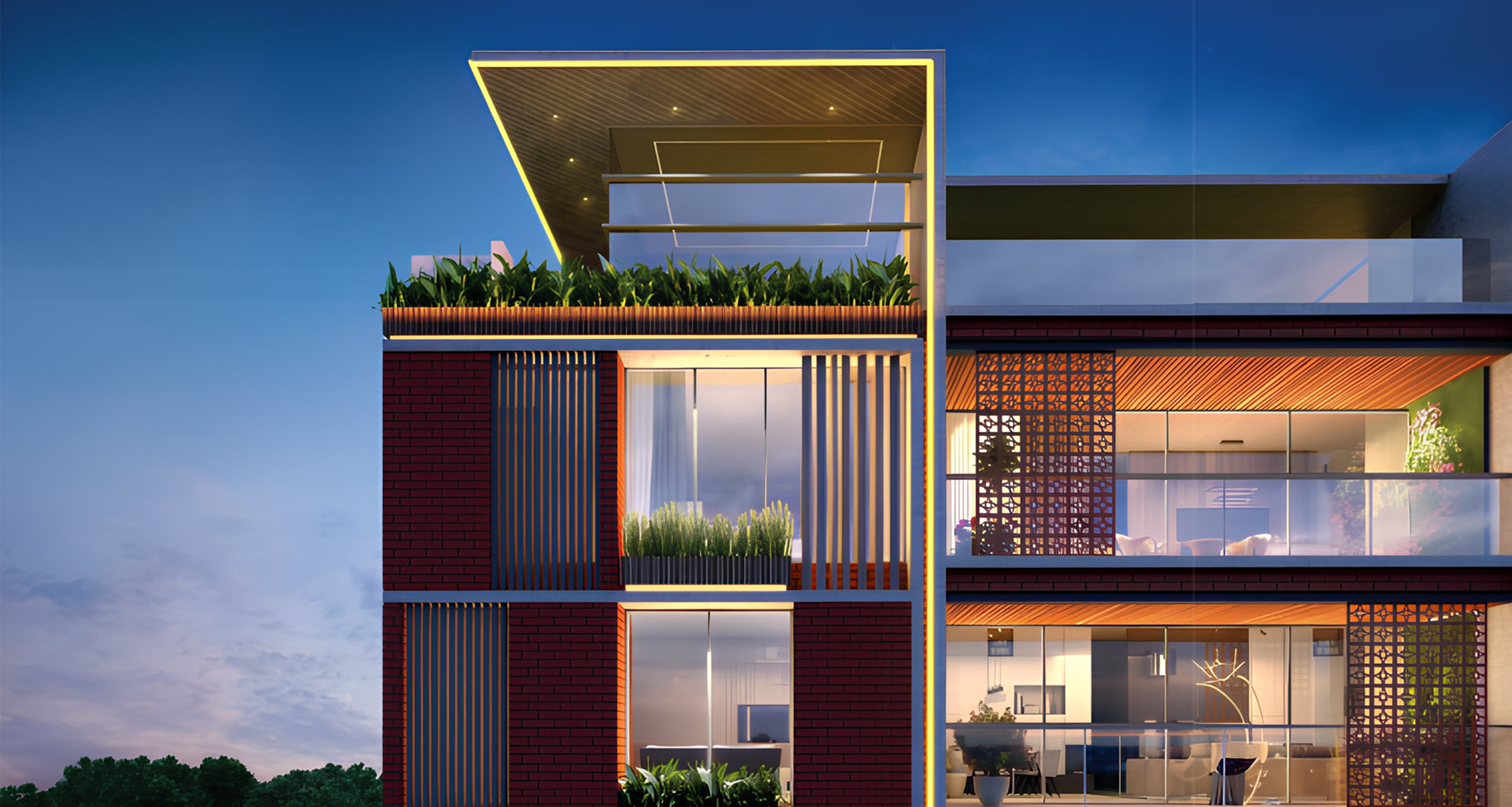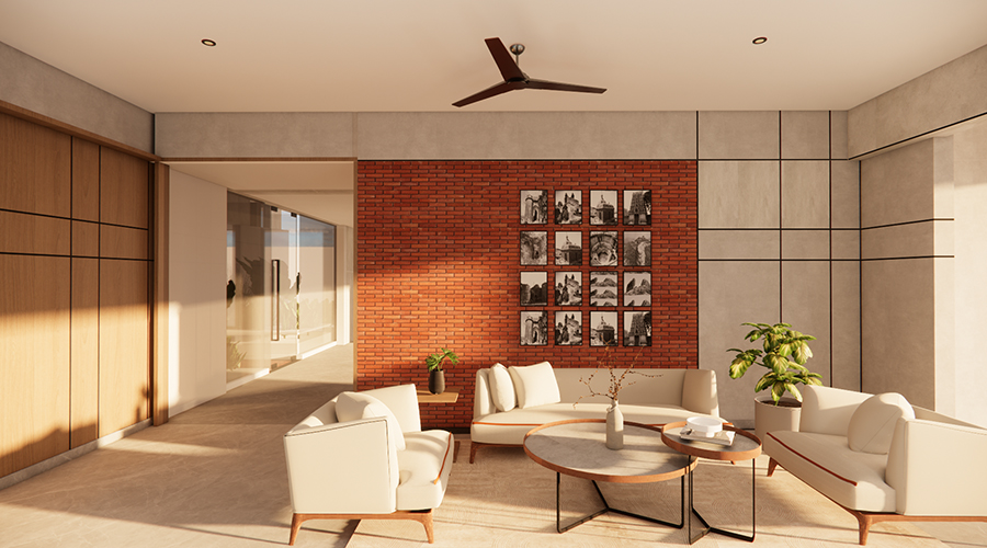 - Elegant red brick cladding for external elevation.